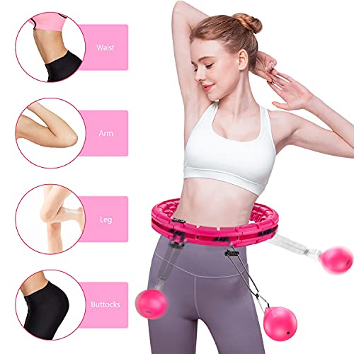 LEAFIA Smart Hula Hoop, Fitness Intelligente, Professionale Dimagrante, Non Cade, con Fitness Massage Perdita di Peso, Regolabile 24 Nodi, per Adulti, Bambini, Principianti, Massaggio (Rosa)