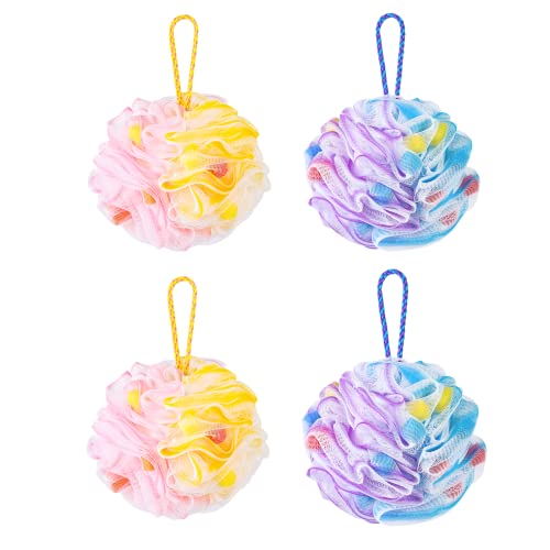 Leafre Body Puff - Set di 4 scrubber per il corpo per donne e uomini - morbido luffa doccia - esfoliante extra large con inserto in spugna schiumogena aggiuntivo - mix di colori unico