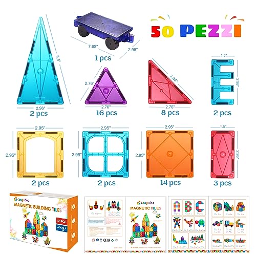 LeagoEra 50 Pezzi Costruzioni Magnetiche Giochi Bambini, Magneti per Ragazzi, Giocattoli 3 4 5 6 7 Anni