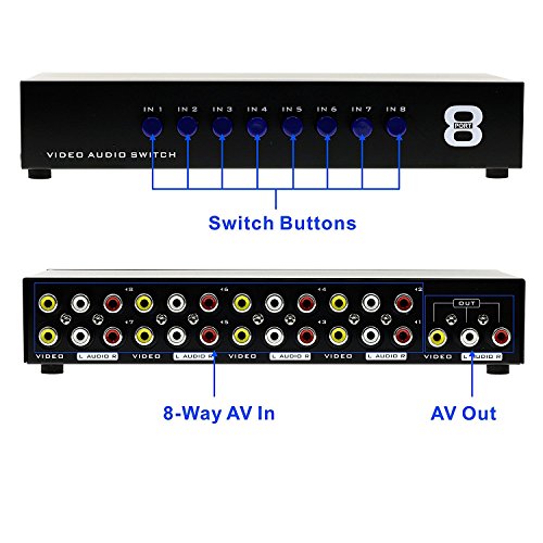 LEAGY Commutatore AV a 8 Vie Commutatore RCA 8 in 1 Uscita Video Composito Selettore Audio Box per Console di Gioco Dvd STB