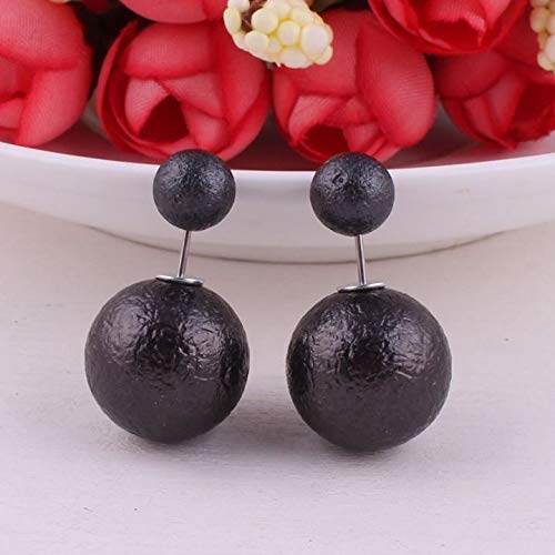 LeahMaria Doppia perla orecchini a sfera anteriore posteriore a sfera effetto foglia, 2 pezzi, Acciaio inossidabile