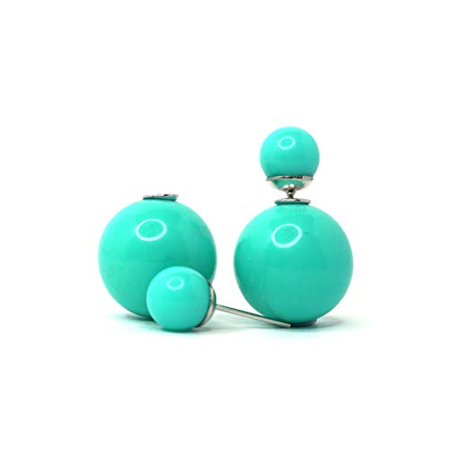 LeahMaria Orecchini a doppia perla fronte/retro, a sfera, 2 pezzi, opaco (diversi colori) e Acciaio inossidabile, colore: Tourquise, cod. LM-032