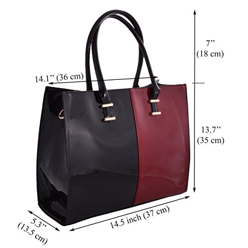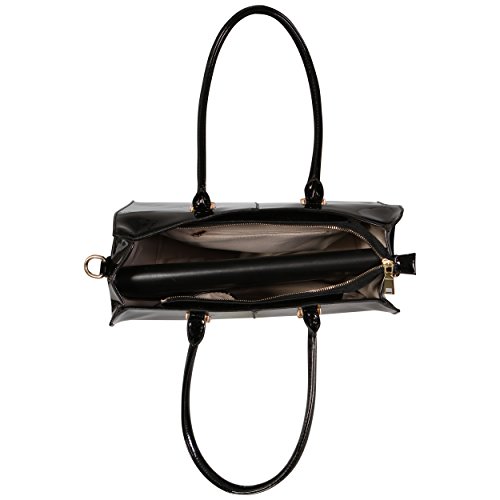 LeahWard, borsa a spalla, da college, in finta pelle, 319, grande, per documenti in formato A4, 319, Oro (BLACK PATENT BAG), L