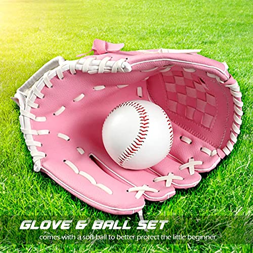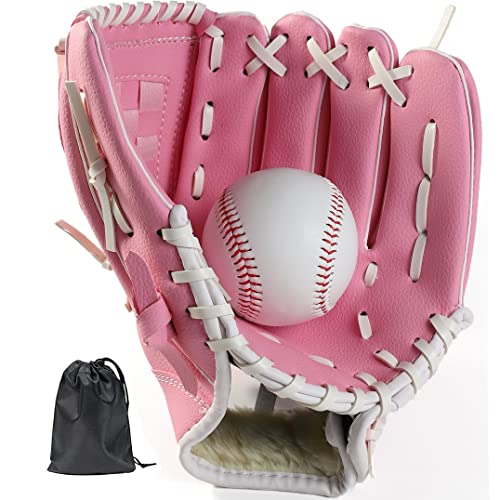 LeapBeast Guanti da Baseball, Brocca Softball Guanti con Morbido Solido PU Ispessimento Left Hand Throw per Bambini/Ragazzi/Adulti Professionale Baseball Guanto (Rosa, 10.5")