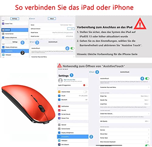 LEAPEST Mouse wireless Bluetooth per MacBook Pro/Air/Mac/iPad/laptop/Desktop/Mac/PC/computer/telefono - Mouse da ufficio portatile sottile e silenzioso con adattatore USB-C da 2,4 GHz senza fili (rosso)