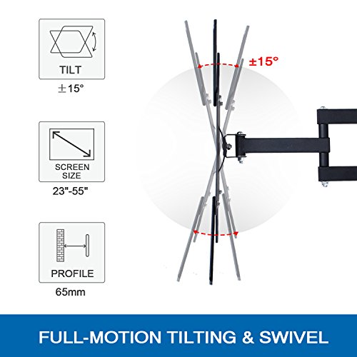 Leaptek Staffa TV per montaggio a muro, inclinabile, girevole, con braccio a sbalzo, per TV a schermo piatto LCD, LED e Plasma, da 23 a 55 pollici, capacità di carico fino a 35 kg, VESA 400 x 400 mm, con adattatore VESA