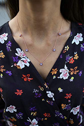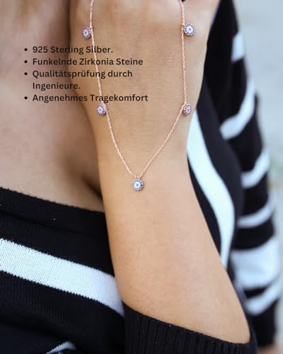 LEARGISS Collana da donna in argento sterling 925 bianco/oro rosa/oro con 5 ciondoli Nazar Boncuk catena zirconi blu bianco pietra (Nazar occhio Evil Eye), Argento sterling, Zirconia cubica