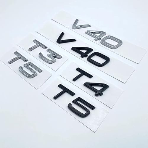 LEARNE Adesivo per Targhetta con Emblema in Argento Nero Lucido per Volvo V40 T3 T4 T5 per Volvo Trunk Lid Badge Modelli Decal Car Sticker,V40-Black