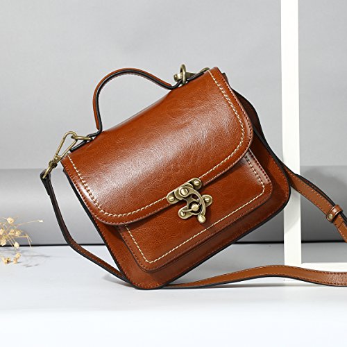 Leathario Borsa Vera Pelle Donna Ragazza Tracolla Mano Spalla Estate Vintage Fashion Scuola Weekend Lavoro Marrone