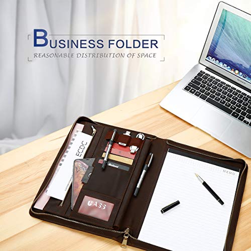 Leathario Cartella Portadocumenti A4 in Pelle Vera con Cerniera, Portablocchi e Cartella Organizzatore per Uso Quotidiano come Lavoro, Ufficio, Conferenza e Riunione