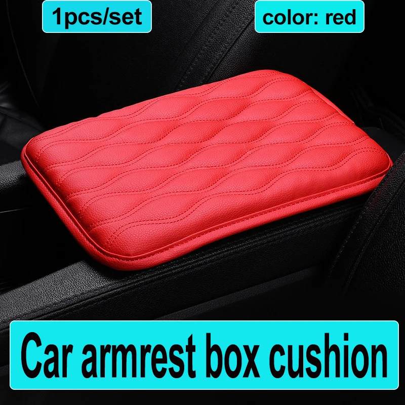 1pcs Leather Auto Car Armrest Box Cushion Bag Covers Red Car Armrest Storage Protective Car Center Console Seat Armrest Pad