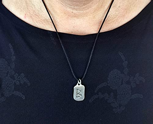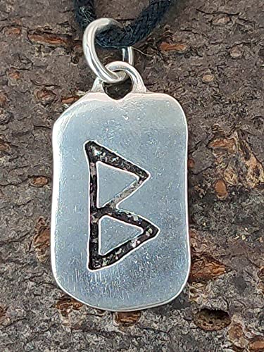 Amuleto in argento sterling 925 con runa Berkana incisa sulla parte anteriore. La parte posteriore è liscia e lucida.