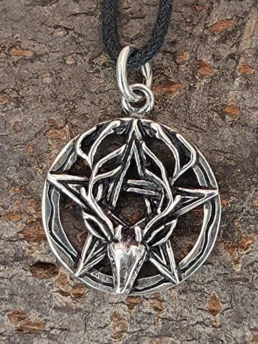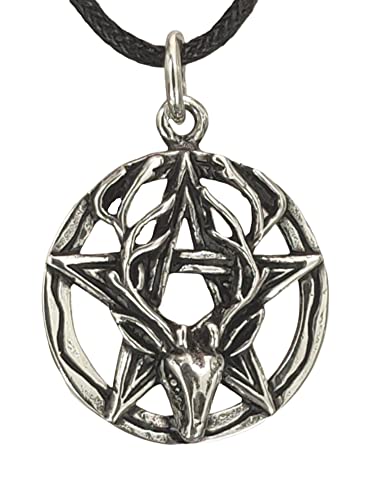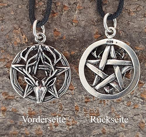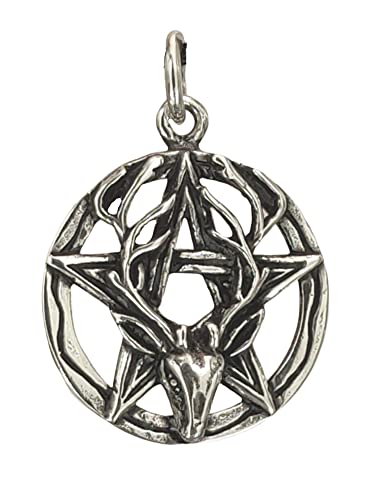 Combinazione artistica di testa di cervo e pentacolo in argento sterling 925.