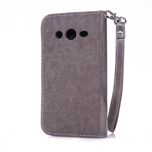 Leather Case Cover Custodia per Galaxy Core 2 II Duos SM-G355H, Cozy Hut Caso / copertura / telefono / involucro del modello PU con a Bookstyle tasche carte di credito funzione con interno morbido in TPU Portafoglio Supporto Slot Schede Protettiva Bumper Caso, Bronzing oro farfalla Leather Case Cover Custodia per Samsung Galaxy Core 2 II Duos SM-G355H - grigio