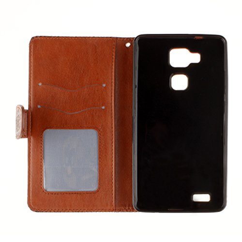 Leather Case Cover Custodia per Huawei Ascend Mate 7, Ecoway Caso / copertura / telefono / involucro disegno mandala in rilievo retro della del modello PU con a Bookstyle tasche carte di credito funzione con interno morbido in TPU Portafoglio Supporto Slot Schede Protettiva Bumper Caso, Leather Case Cover Custodia- marrone