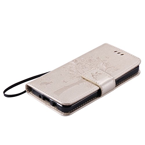 Leather Case Cover Custodia per Samsung Galaxy A3, Ecoway Caso / copertura / telefono / involucro gatto farfalla Albero in rilievo Disegno retro della del modello PU con a Bookstyle tasche carte di credito funzione con interno morbido in TPU Portafoglio Supporto Slot Schede Protettiva Bumper Caso, Leather Case Cover Custodia - Golden