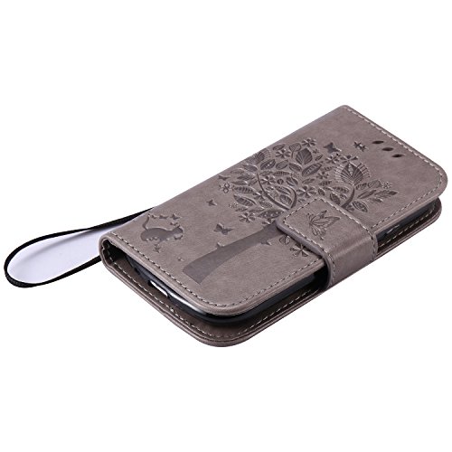 Leather Case Cover Custodia per Samsung Galaxy S3 mini i8190 S3mini, Ecoway Caso / copertura / telefono / involucro gatto farfalla Albero in rilievo Disegno retro della del modello PU con a Bookstyle tasche carte di credito funzione con interno morbido in TPU Portafoglio Supporto Slot Schede Protettiva Bumper Caso, Leather Case Cover Custodia - gray