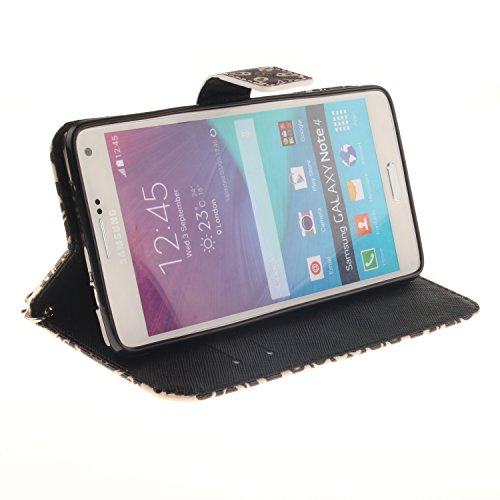 Leather Case Cover Custodia per Samsung galaxy Note4 N9100, Ecoway Caso / copertura / telefono / involucro Modello retrò colorato del modello PU con a Bookstyle tasche carte di credito funzione con interno morbido in TPU Portafoglio Supporto Slot Schede Protettiva Bumper Caso - Flower Palace