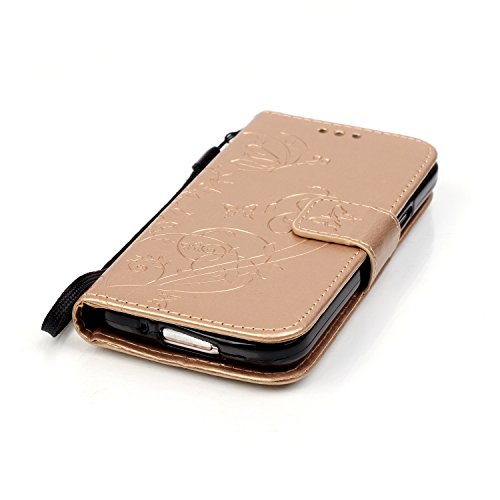 Leather Case Cover Custodia per Samsung Galaxy S5Mini G800 SM-G800, Ecoway Caso / copertura / telefono / involucro del modello PU con a Bookstyle tasche carte di credito funzione con interno morbido in TPU Portafoglio Supporto Slot Schede Protettiva Bumper Caso - Golden Butterfly Print