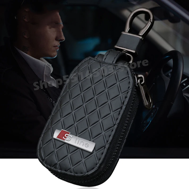 Leather Key Cover Keychain For Audi Sline A1 A3 Q3 A4 A5 Q5 A6 S6 A7 B6 B7 B8 8P 8V 8L TT With Logo Key Case Car Accessories