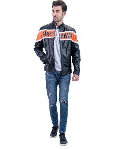 Leather Maker Mens H-D Victory Lane Vintage Biker Black Cowhide Leather Jacket - Black - 4X-Large