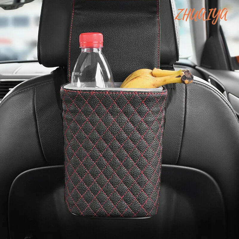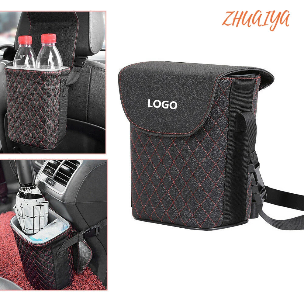 Leather Car Trash Bin Auto Organizer Storage Box Gargage Holder Automobile Storage Car Accessories For Toyota logo Camry Land