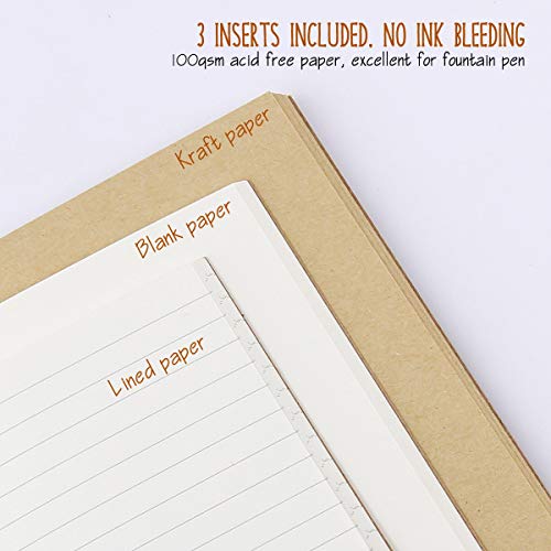 ✔ Design ricaricabile in pelle - ha 3 diversi inserti di ricarica all'interno (foderati, vuoti e carta kraft) per soddisfare il vostro uso quotidiano, ogni inserto ha 64 pagine (contando entrambi i lati), quando uno dei taccuini è pieno, è semplice rimuoverlo e ricaricarne uno nuovo. Ogni diario in pelle viene fornito con 1 tasca in PVC per biglietti da visita, appunti, ricevute e altri piccoli tesori di carta.