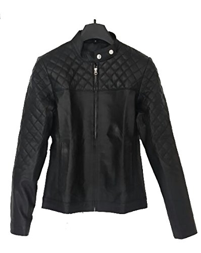 LEATHER4U Giacca da donna in pelle di agnello LL861, colore nero Black X-Large