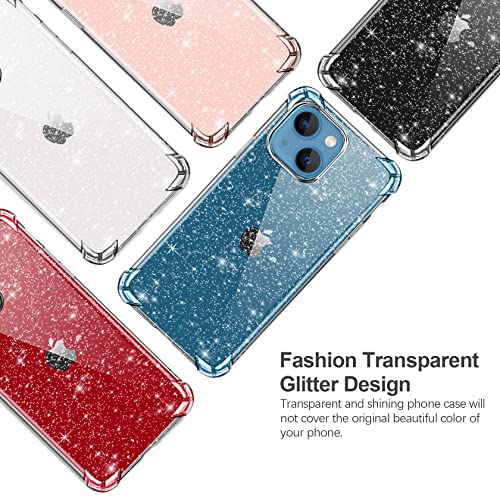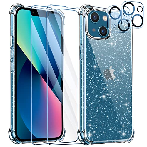 Leathlux Cover Compatibile con iphone 13 Custodia Glitter Brillantini Silicone Trasparente Antiurto con 2 Pellicola Vetro Temperato e 2 Pellicola Fotocamera per iphone 13