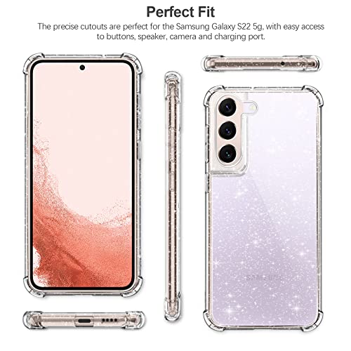 Leathlux Cover Compatibile con Samsung Galaxy S22 5G Custodia Glitter Brillantini Silicone Trasparente Antiurto con 1 Pellicola Vetro Temperato per Samsung Galaxy S22 5G