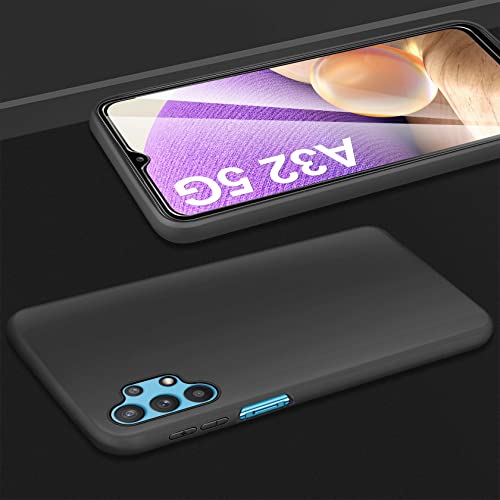 Leathlux Cover Compatibile con Samsung Galaxy A32 5G/ M32 5G (Non per 4G) con 3 Pellicola Vetro Temperato, Morbido Silicone Protettivo Bumper TPU Gel Smartphone Custodia Case - Nero