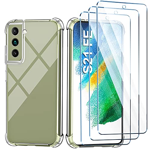 Leathlux Cover Compatibile con Samsung Galaxy S21 Fe 5G(Non per S21 5G) Trasparente con 3 Pellicola Vetro Temperato, Morbido Silicone Protettivo Antiurto Bumper TPU Gel Smartphone Custodia Case