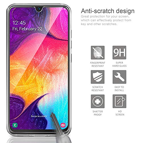 Leathlux Cover paraurti morbida in TPU trasparente con proteggi schermo in vetro temperato per Samsung Galaxy A50 Trasparente