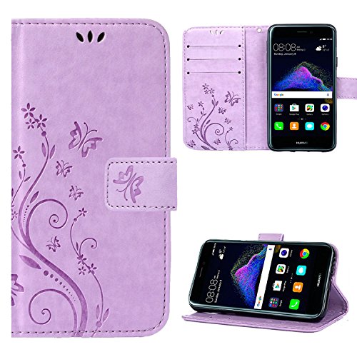 Leathlux Custodia P8 Lite 2017 Cover Luce Viola Retro Design con Cinturino da Polso Magnetico Snap-on Internamente Silicone TPU Case in Pelle Protettiva Flip Cover per Huawei P8 Lite (2017) 5.2"