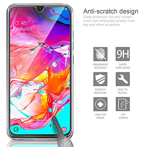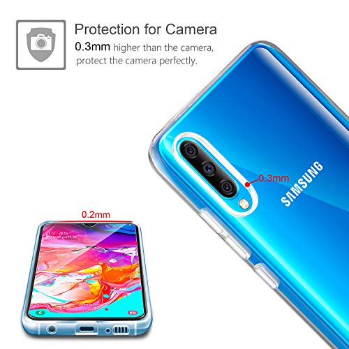 Leathlux Custodia protettiva in morbido TPU trasparente con proteggi schermo in vetro temperato per Samsung Galaxy A70 chiaro