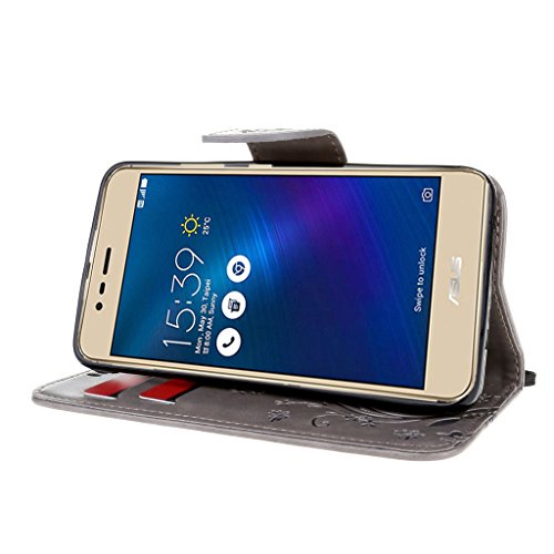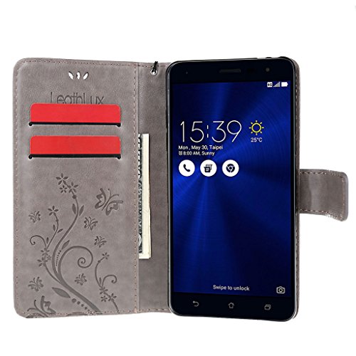 Leathlux Custodia Zenfone 3 Max Grigio Retro Design con Cinturino da Polso Magnetico Snap-on Book Style Internamente Silicone TPU Case in Pelle Protettiva Flip Cover per ASUS Zenfone 3 Max ZC520TL