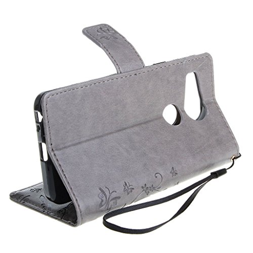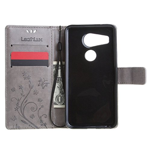 Leathlux Per LG Nexus 5X Grigio Custodia, Retro Fiore Modello Design Con Cinturino da Polso Magnetico Snap-on Book style Internamente Silicone TPU Custodie Case in pelle Protettiva Flip Cover Per LG Nexus 5X / LG Angler/Google Nexus 5X