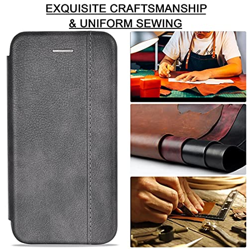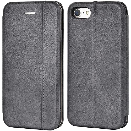 Leaum Custodia per iPhone SE 2020, in pelle, iPhone 7/8, con scomparto per carte di credito [magnete] [supporto incluso] custodia antiurto per iPhone 7/8/SE 2020 - grigio scuro