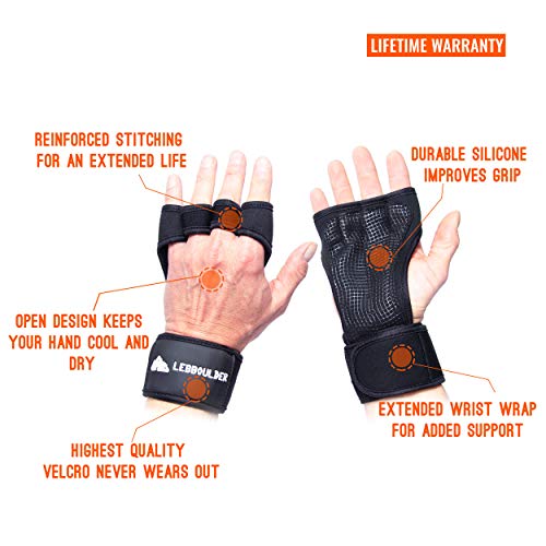LEBBOULDER Guanti Cross Training con Supporto per Il Polso per WODs Grande Nero