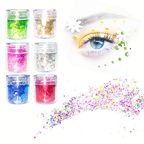 LEBENSWERT Glitter sequin chunky glitter per viso, unghie, occhi, labbra, corpo, trucco fai da te, paillette per musica, festival, masquerade, Halloween, feste, Natale, palla
