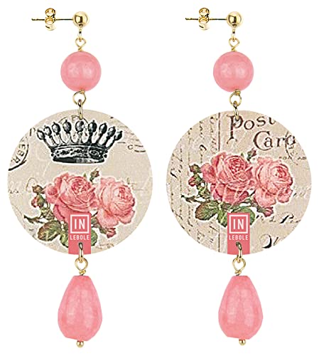 IN Lebole Collezione The Circle Fiore Rosa e Corona Orecchini da Donna in Ottone Pietra Rosa Sfaccettato