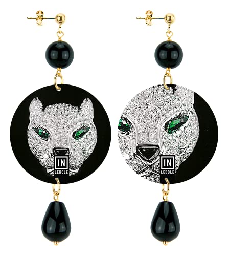 IN Lebole Collezione The Circle Gioiello Testa di Puma Orecchini da Donna in Ottone Pietra Nero