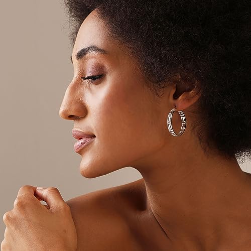 LeCalla Sterling Silver greca muro Cut-Out Orecchini a cerchio per le donne