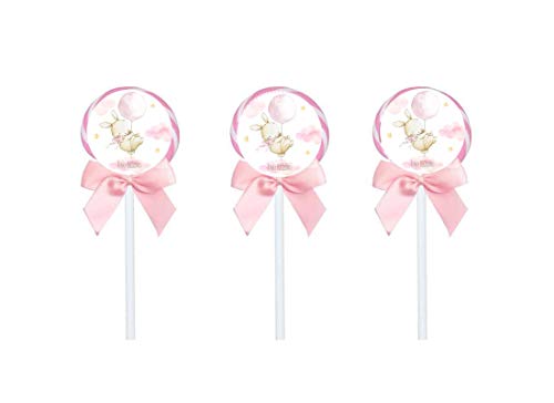 Ipt 12 Lecca Lecca Spirale da 30gr + 12 Targhette / Toppers per Festa a Tema (Coniglietta Rosa - Bunny (Battesimo))