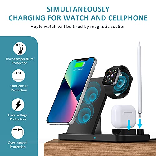 Caricatore wireless: nuova stazione di ricarica induttiva 4 in 1 per ricaricare contemporaneamente il vostro iPhone/Apple Watch/Airpods, anche come supporto per Apple Pencil. Carica più dispositivi contemporaneamente in un unico posto, ordinato e organizzato. Libera le mani per guardare film, SMS, chiamate e chat dal vivo mentre si ricarica in modalità wireless.