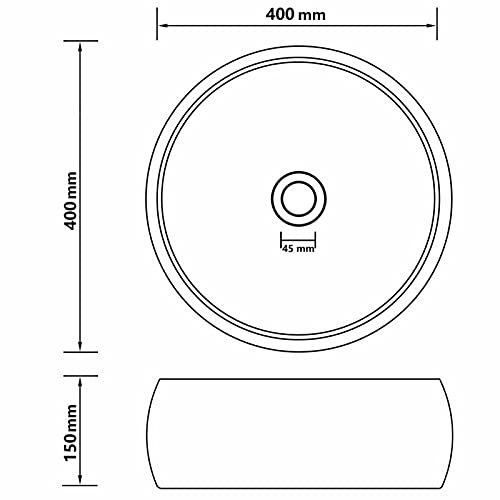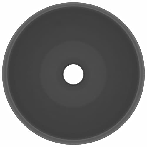 Lechnical Lavandino Lavandino da Bagno Lavabo Lavandino Bagno da Appoggio Lavandino da Esterno Lavandino Lusso Rotondo Grigio Scuro Opaco 40x15 cm in Ceramica