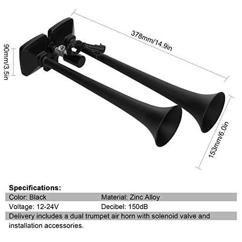 Lechnical Tromba d'aria a doppia tromba da 150 dB Tromba elettrica ad alto volume 12-24 V con elettrovalvola per camion per auto RV Marine Boat