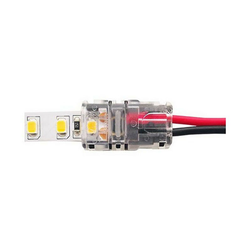 Connettore rapido per nastro LED a singolo colore di larghezza 8mm. Consente il collegamento di nastri LED e filo senza cuciture. Connettore non dritto. Solo uso domestico. Compatibile con nastri LED protetti in silicone. Per 2 fili flessibili o rigidi della sezione 0.75mm2 massimo. Indice di protezione IP: IP20 Utilizzo: Interno Certificazione: QUESTO Larghezza: 10mm Non incluso: Figlio Garanzia: 2 anni Corrente massima: 5A Disponibilità: In magazzino Stato del prodotto: lettera