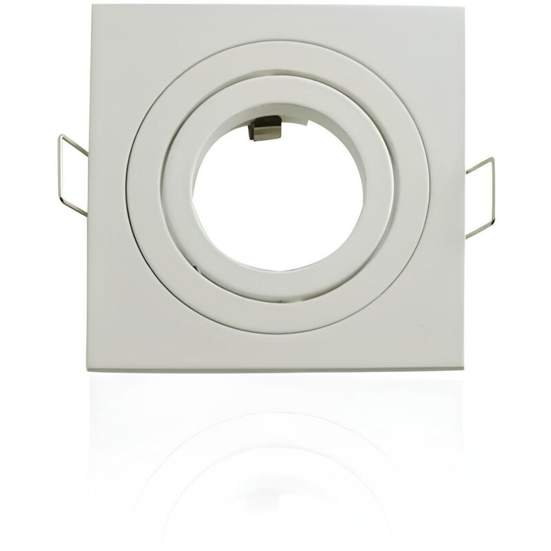 Questo supporto punto inclinazione quadrato consente di collegare i punti al soffitto. Completamente in alluminio verniciato bianco - adatto per punti GU5.3 (MR16) e GU10. Consegnato senza lampadina. 80mm perforazione, fissaggio tipo 1/4 tornio. Supporto spot da incasso quadrato - testa regolabile Questo supporto spot è stato in design quadrato, creando un'atmosfera moderna nel vostro interno. L'ombra è in alluminio verniciato bianco, la testa del punto si inclina a 30°. La testa del posto è un quadrato di 88mm sul lato. Recesse direttamente in un foro di diametro 80mm Per una facile installazione, questo supporto spot viene fornito con molle e il sistema di fissaggio della lampadina (diametro 50mm). Per finalizzare l'installazione, basta aggiungere la lampadina di vostra scelta (MR16 o GU10 - LED o altro) così come la presa adatta. Il punto è installato direttamente nel soffitto rivestito di diametro 80mm. Adatto per punti GU10 e MR16 Questo supporta tutti MR16 (12V) e GU10 (220V)