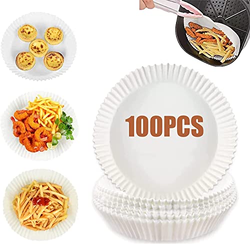 Lecone 100 Pezzi di Carta Monouso per Friggitrice ad Aria, Carta Pergamena Antiaderente Per Friggitrice Ad Aria Naturale Cesto Di Carta Tonda Non Perforata per Arrostire La Cottura in Forno (Bianca)